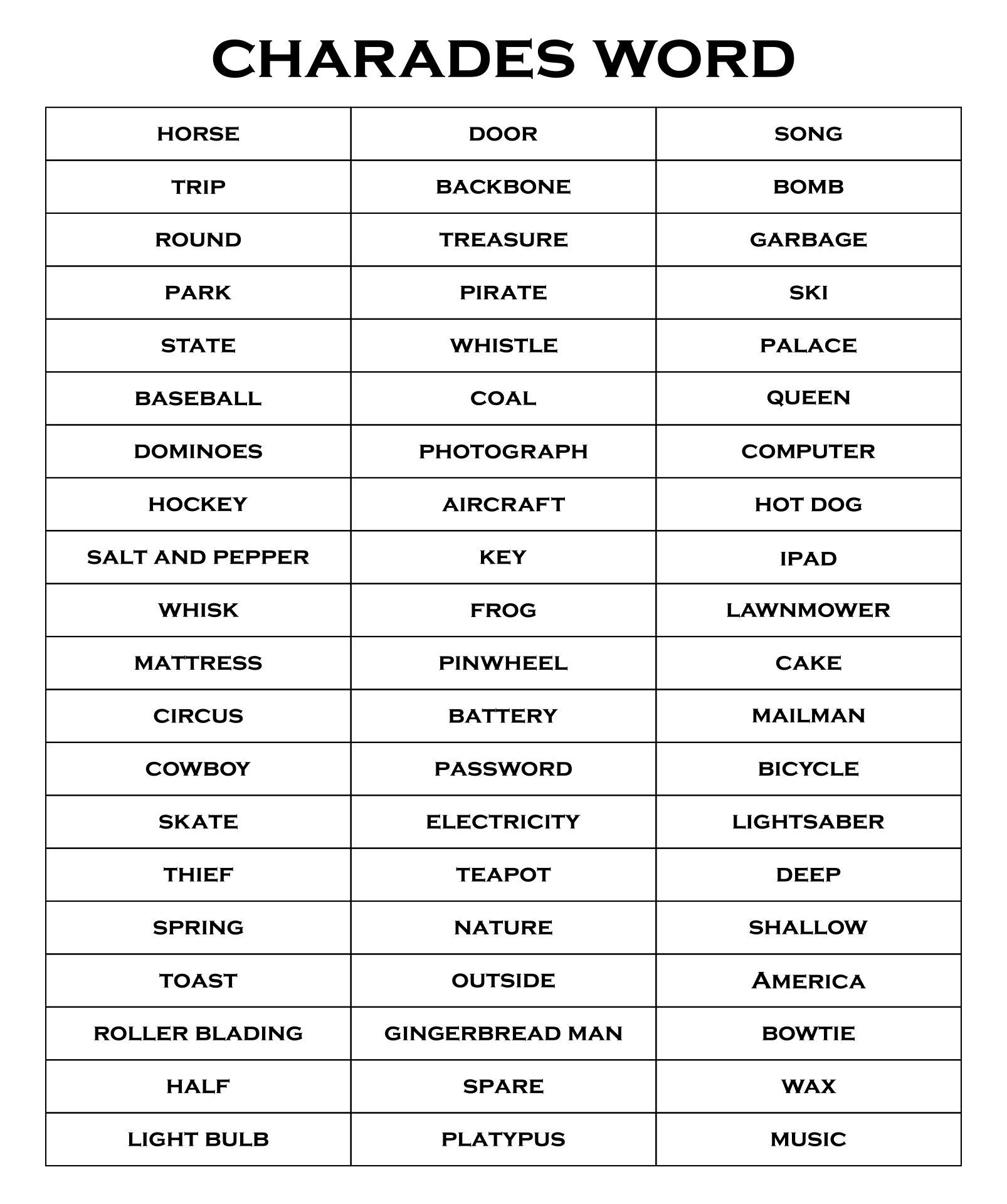 Free Printable Charades Cards – Are you looking for a fun and interactive game to liven up your next party or gathering? Look no further than charades! Charades is a classic party game that never fails to bring laughter and entertainment to any group of…