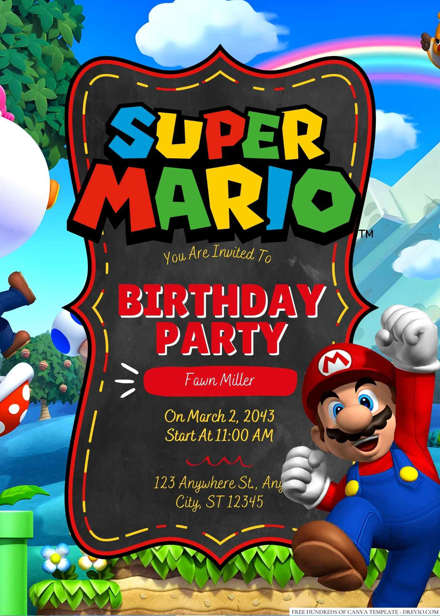 Free Printable Super Mario Bros Invitations