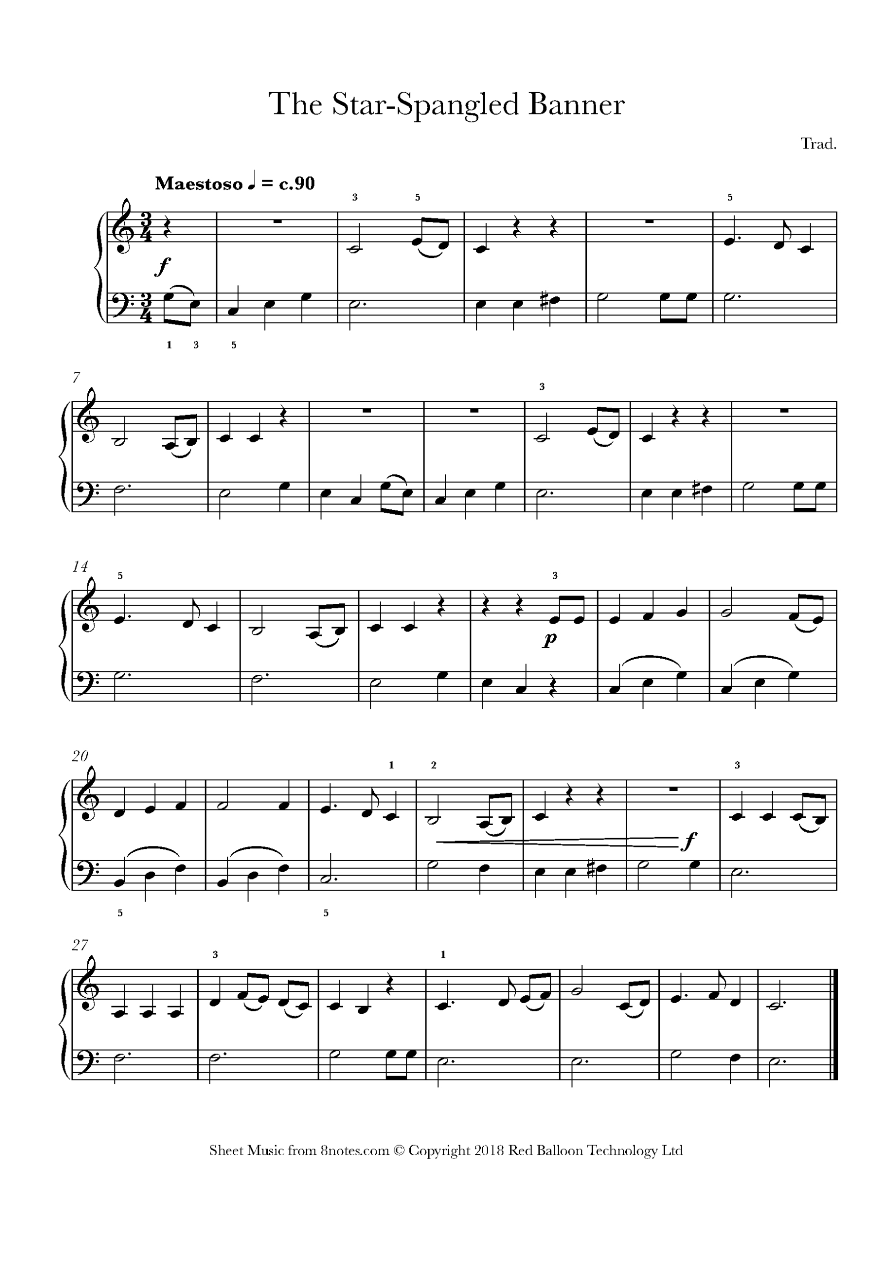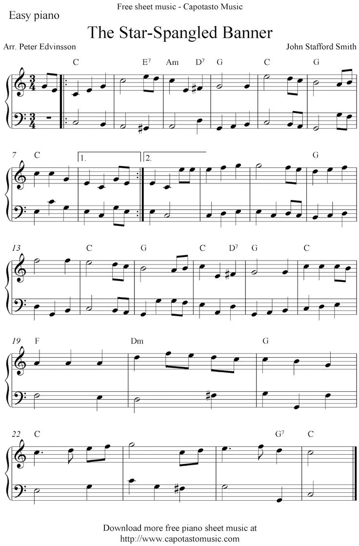 Free Printable Piano Sheet Music For the Star Spangled Banner