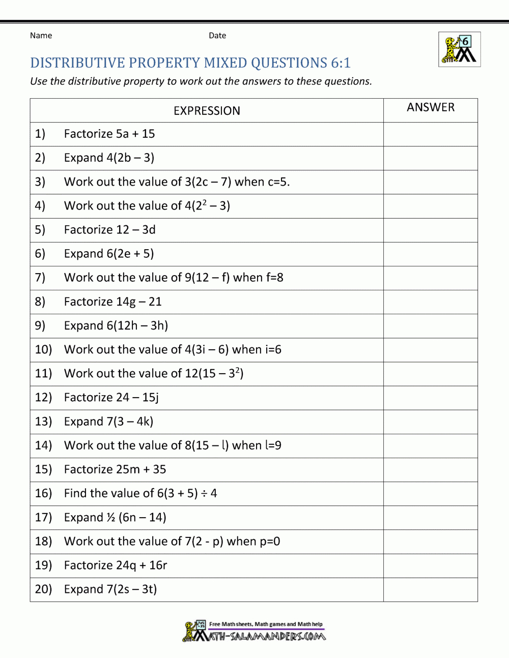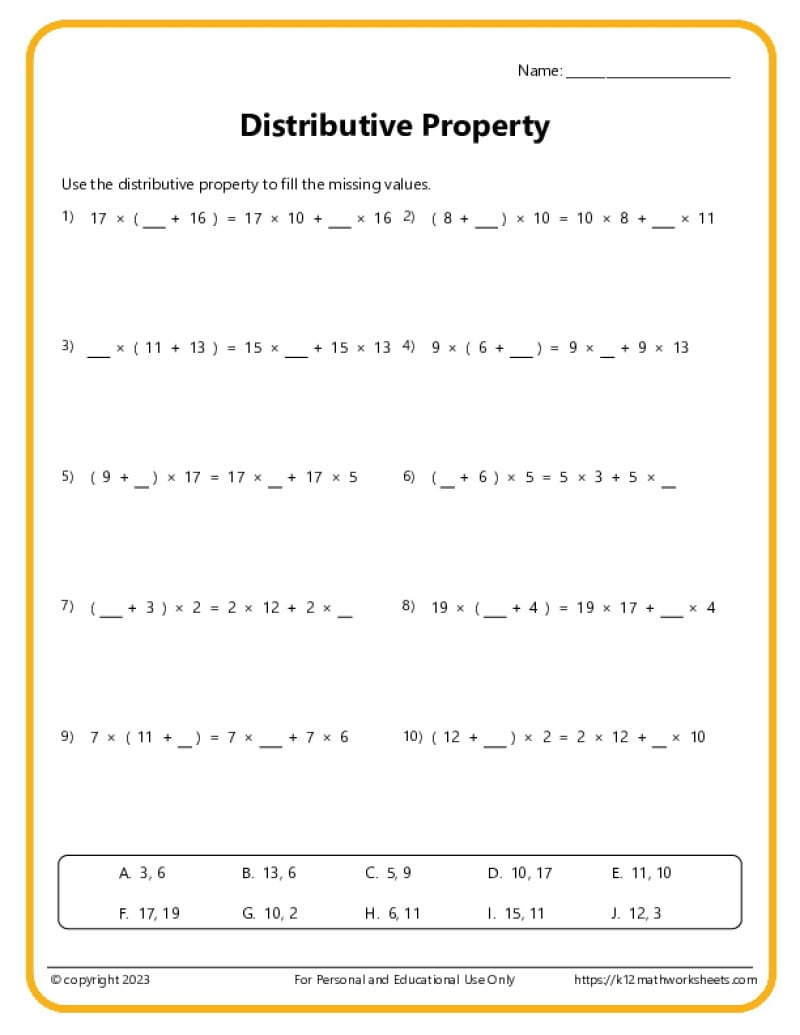 Free Printable Distributive Property Worksheets – Are you ready to make multiplication practice fun and engaging? Look no further than these free distributive property printables! Whether you’re a student looking to sharpen your math skills or a teacher searching for new ways to engage your…