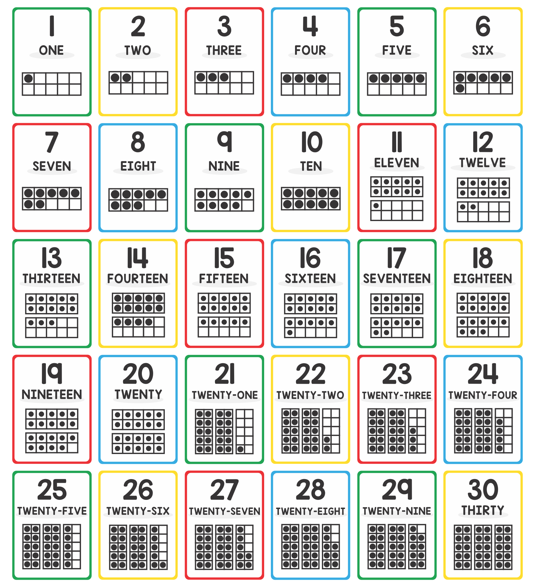 Free Printable Number Flashcards 1-30