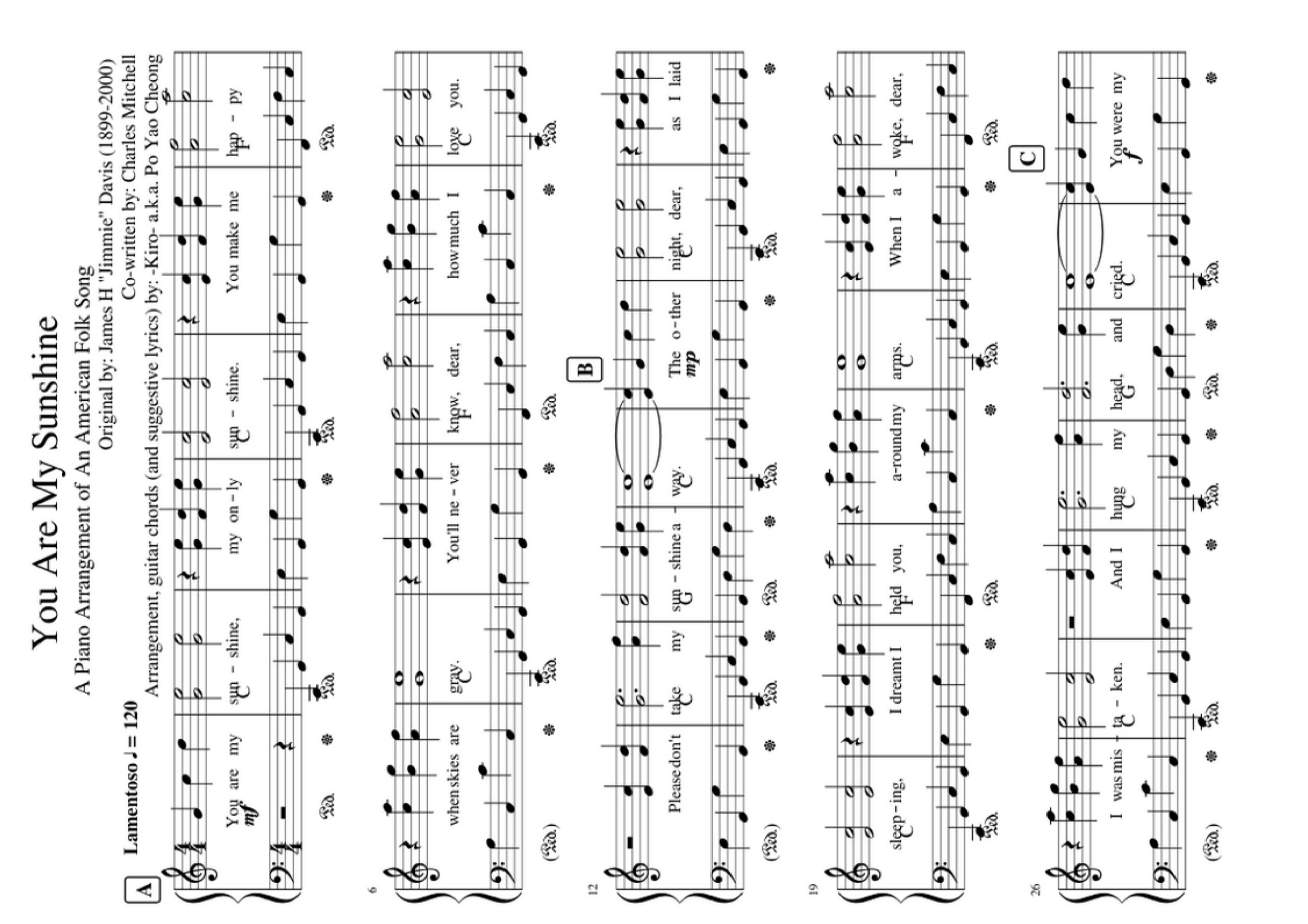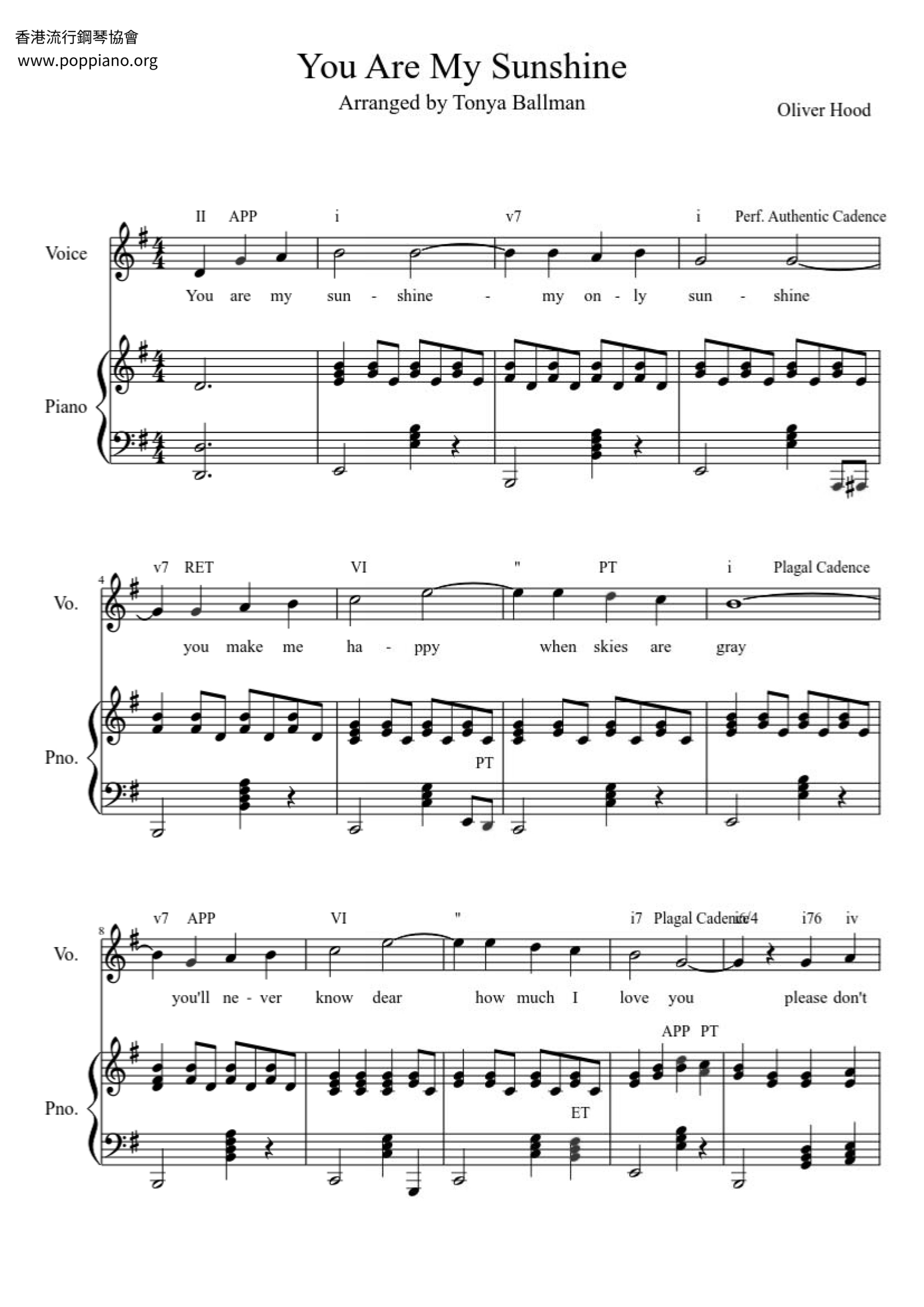Free Printable Piano Sheet Music For You Are My Sunshine