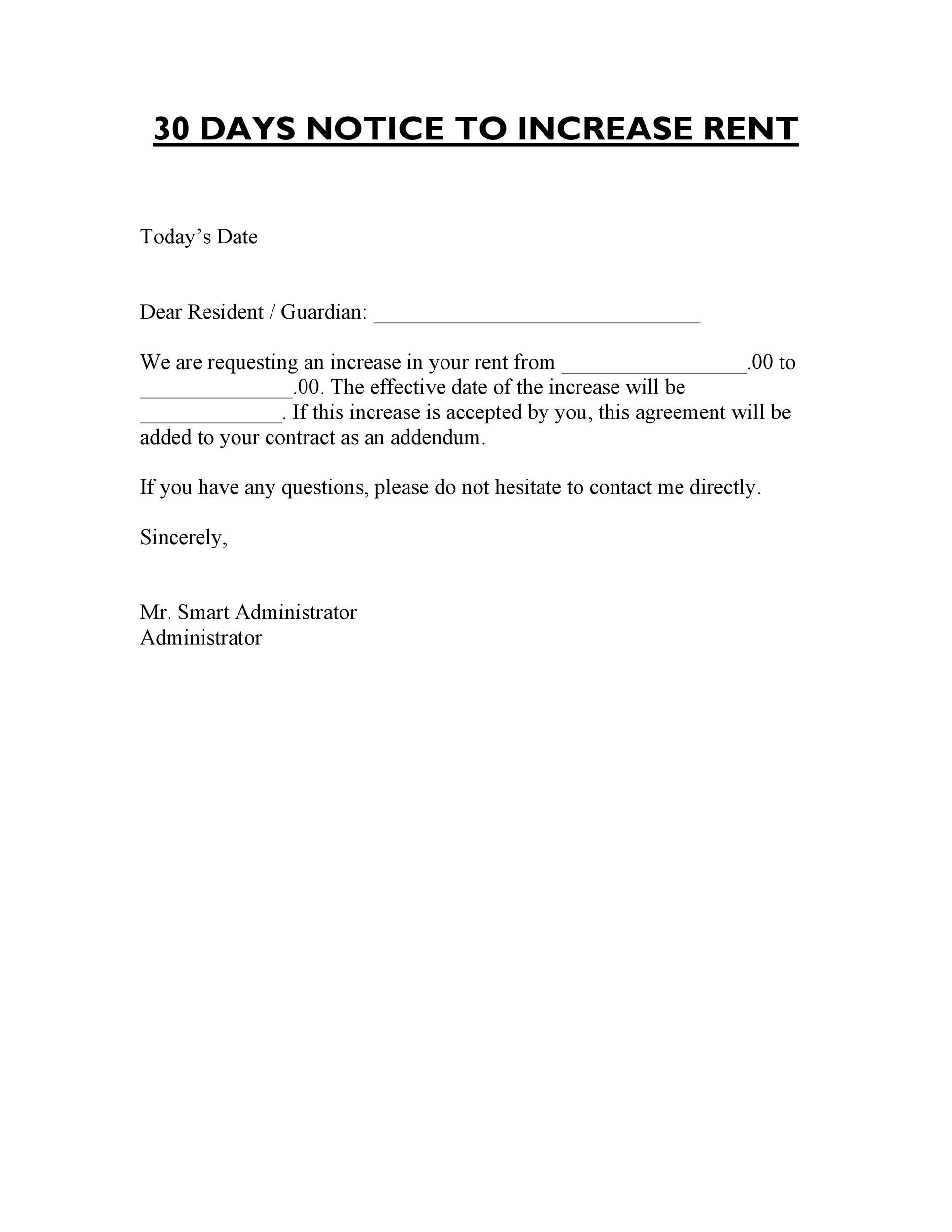 Free Printable Rent Increase Letter