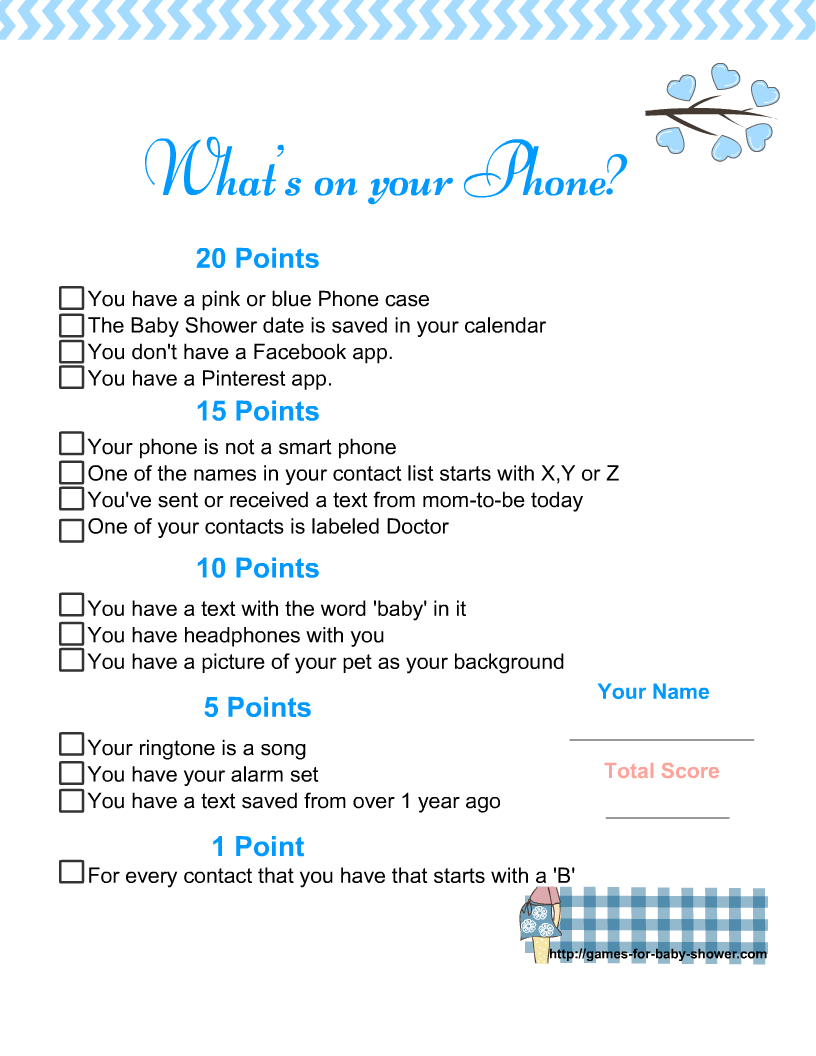 What’s in Your Phone Baby Shower Game Free Printable